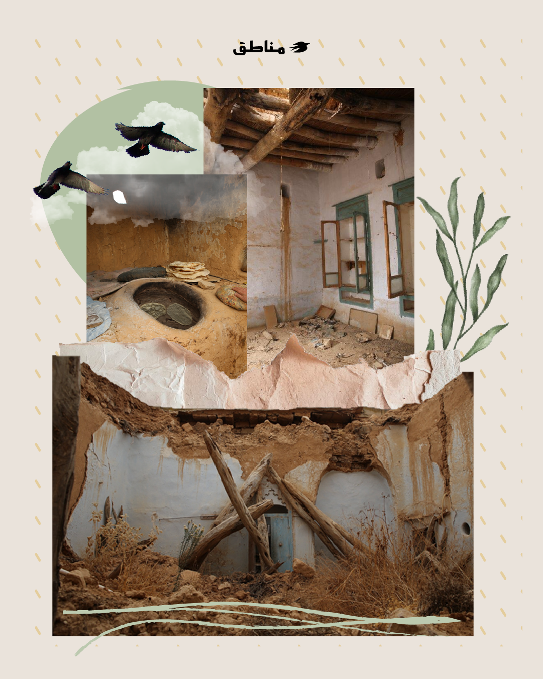 الدخول إلى أحد المنازل الطينيّة ينقلك إلى زمن آخر، موقدةٌ عربيّة بداخون كبير من الطين، تحجز لها زاوية من البيت. أبواب خشبيّة حفر عليها الزمن أغنيات شاهدة عليه، شبابيك واسعة، قنديل أو سراج معلّق على عمود، “يوك” في الحائط يوقظ الذاكرة العتيقة مع كلّ ما تحمله من جمال وبساطة عيش.