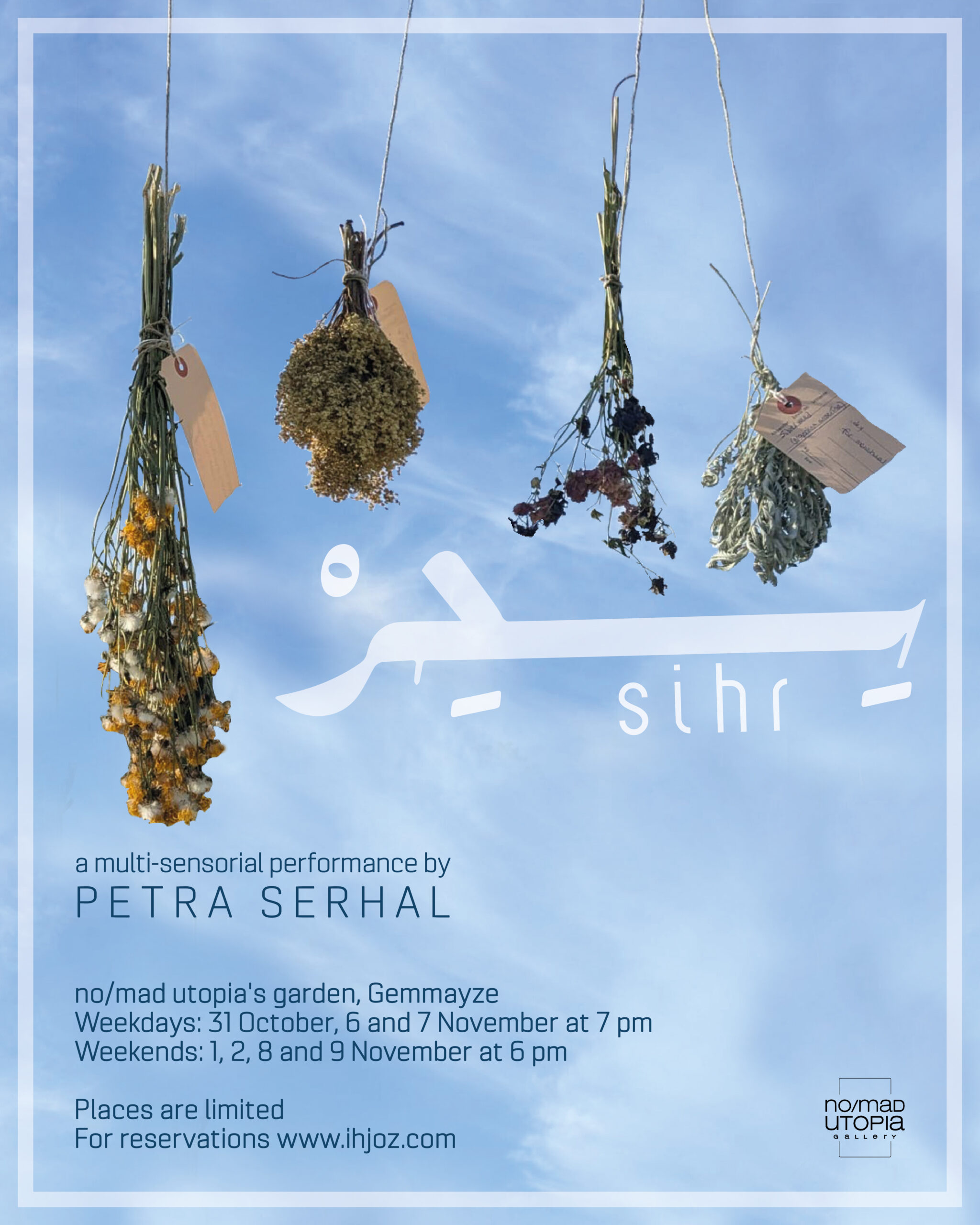 برفقة صوت فيروز وهي تغنّي “بيتك يا ستّي الختيارة”، تستقبلنا سرحال في حديقة غاليري “نو/ماد يوتوبيا” (الجمّيزة – بيروت)، مرحّبةً بنا برذاذ عطرٍ من النباتات البرّيّة وكأسٍ من ماء الورد. بهذه الطقوس البسيطة تبدأ رحلتنا في “سِحر”، عرضٌ يُعيدنا إلى الجذور، إلى زمنٍ كانت فيه النساء على تواصلٍ حقيقيّ مع الأرض، ينظرن إلى القمر، ويجدن في الوديان أعشابًا تشفي الجسد والروح. تجربةٌ سِحريةٌ مع النباتات العطريّة والطبّيّة والزهور، نخوضها بجميع حواسنا بينما نستمع إلى حكاياتٍ عن علاقة النساء بالحبّ والفقدان والطبيعة والسحر.
