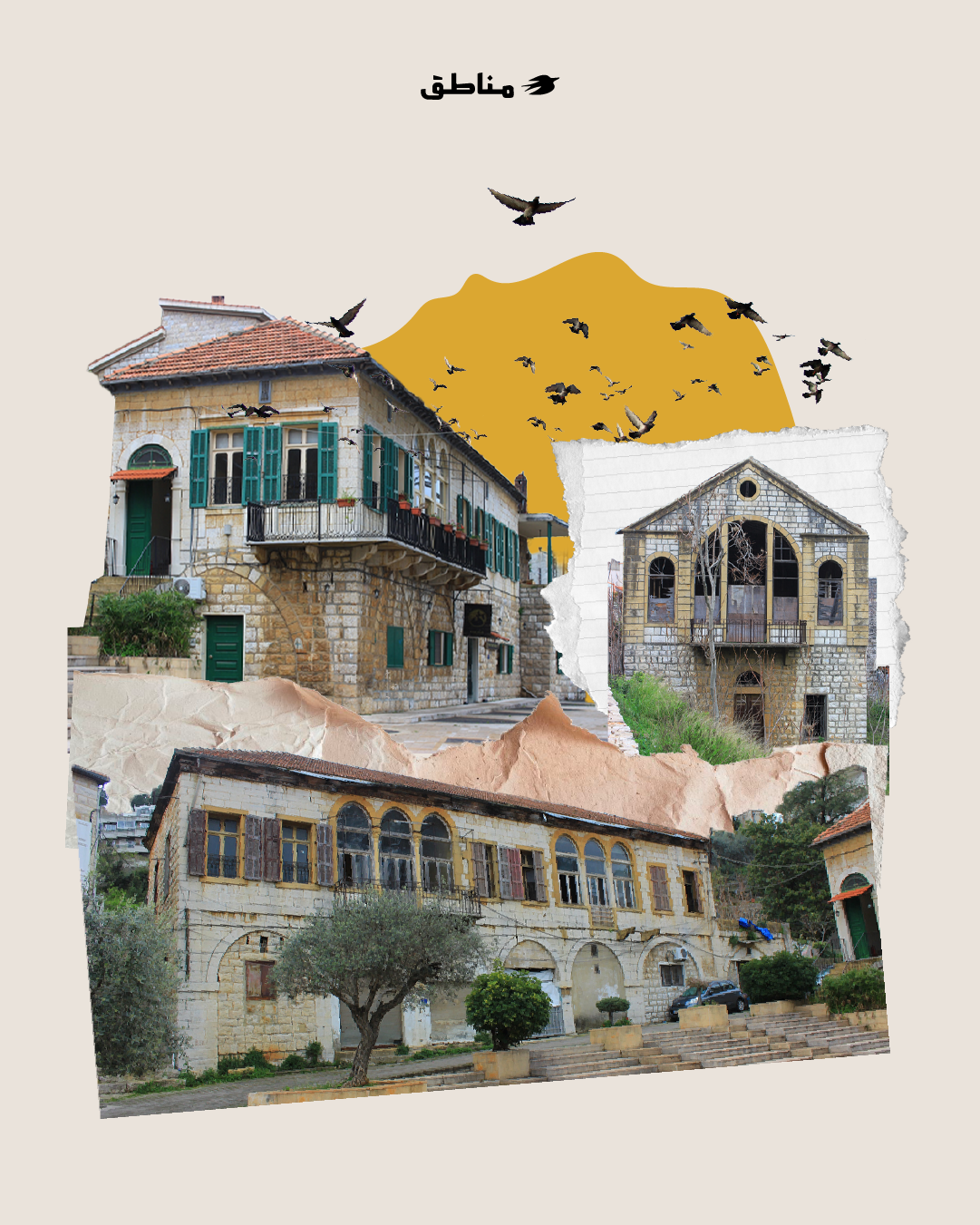 في حديث إلى “مناطق نت” يقول المحامي كمال الحاج، وهو سليل عائلة مؤسّسة في البلدة، إنّ “اختيار الأجداد لموقع الساحة لم يكن عشوائيًّا، فقد عُثر فيها على نبع ماء شكّل نقطة جذب طبيعيّة للناس والقوافل، فأقيمت حوله بيوت من الحجر والقناطر والمندلون، بنوافذ واسعة وأسقف قرميديّة، على الطراز العمرانيّ اللبنانيّ الأصيل”.