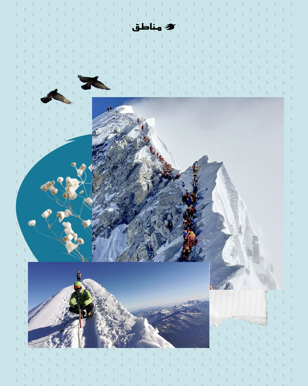 يغامر كثيرون في اقتحام الجبال شتاءً، ونعني هنا تسلّقها، وهم يحملون تصوّراتٍ مسبقة عن ذواتهم تفوق فهمهم لطبيعة المكان. تنمو داخل بعض المتسلّقين هالة ذهنيّة حول ‘قاهر الجبل”، هالة تُغذّيها لقطات الكاميرا، وسرديّات البطولة، وبريق الإعجاب المنتظر من الغير.
