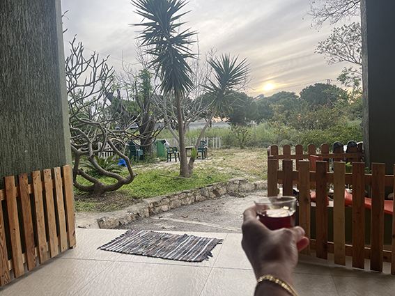 مذ عدت لا أخرج من البيت إلّا لمامًا كي أجلس في الحديقة حيث أتناول الطعام وأتشمّس وأرسم وأكتب.