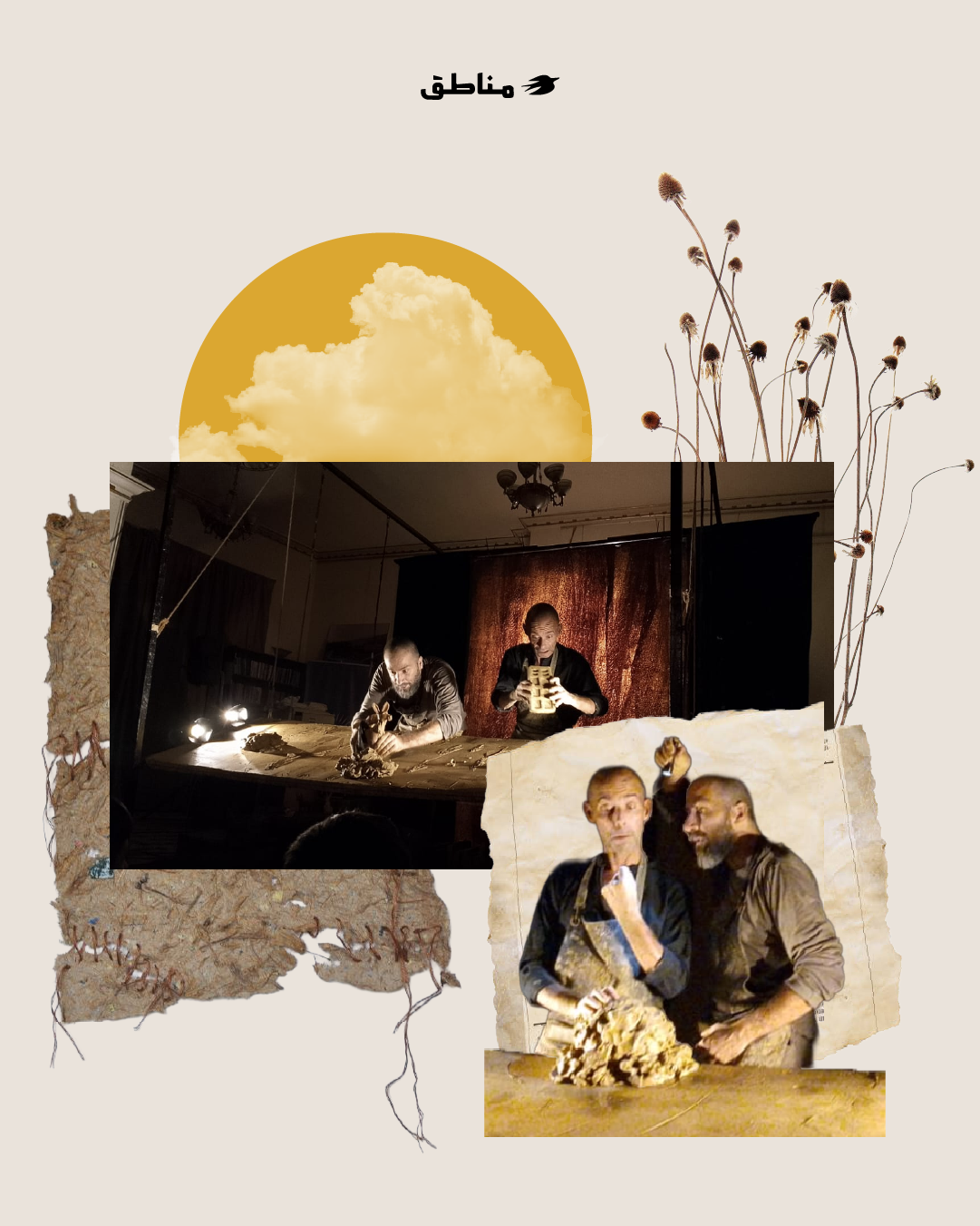 لا يُختصر الأمر، على الخشبة، بالأداء الجسديّ، بل يمتدّ إلى رسم حيّ، ونحت يتكوّن أمام أعيننا، فيتحوّل المسرح إلى ورشة كونيّة صغيرة. هنا يمتزج فنّ السرد بالرقص، وقولبة الطين بتحريك المنحوتات والموادّ والأصوات، ليعيدنا البطلان إلى سلالة الحكايات الأولى، إلى ذلك الأصل الذي ما زلنا نبحث عنه في أعماقنا.