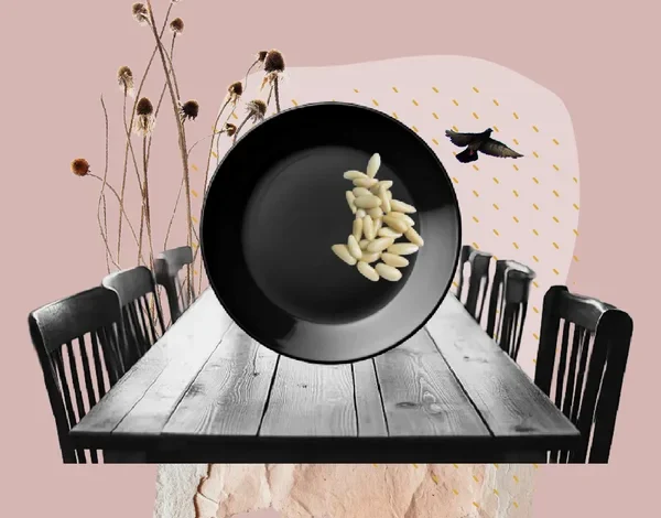 كنت أقصيها إلى حافّة الصّحن بحركة خفيفة ومدروسة خشية من أمّي. كنت أعرف أنّها لو رأتني ستقول لي “كيلو الصنوبر…